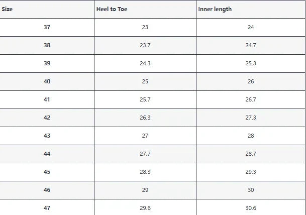 The inner length next to the European size on the tongue is according to the international length as a standard, not the inner length of the shoe, the inner length of the shoe, please take the size chart as a guide, the size information is the inner length, not the outer length. The following sample shoes tongue picture display as a reference, mind do not buy.